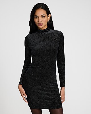 Shine Velvet Mock Neck Long Sleeve Mini Dress