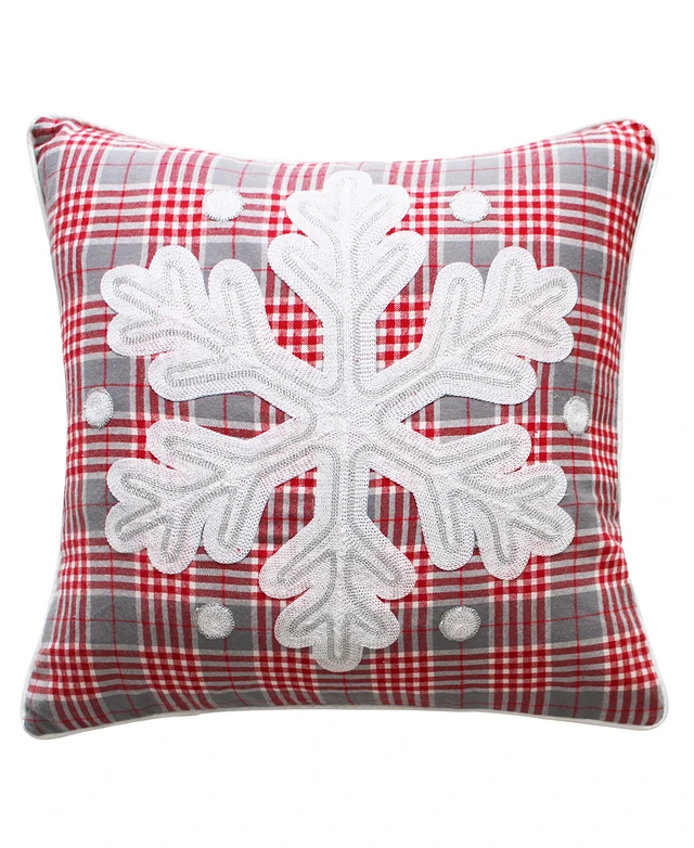 Levtex Winterland Plaid Snowflake Decorative Pillow, 18" x 18"