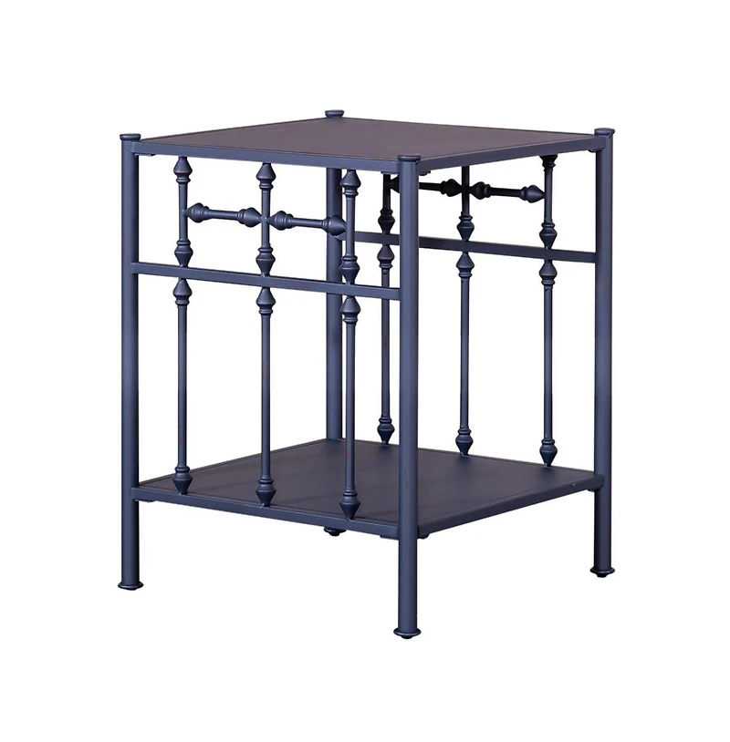 This industrial open night stand is the perfect way to enhance your room with a classic vintage style. The distressed metal finish paired with turned spindles create a truly unique look. This night stand comes in many color options, making it universal and adaptable to any space, while offering a unique designer look.