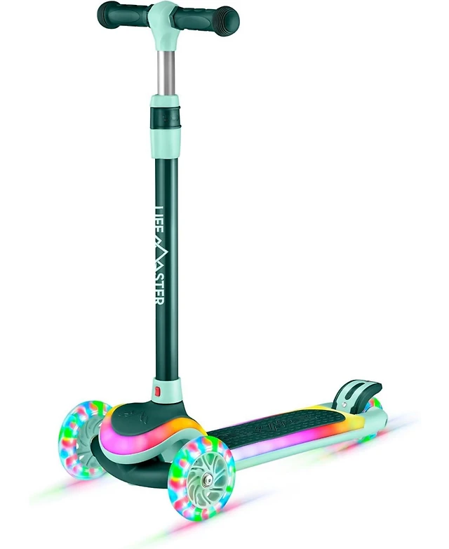LifeMaster 3-Wheel Kids Scooter with Multi-Color Lights, 5-Height Adjustable Handlebar, Wide Anti-Slip Deck, Ages 3+, Supports 150 lbs