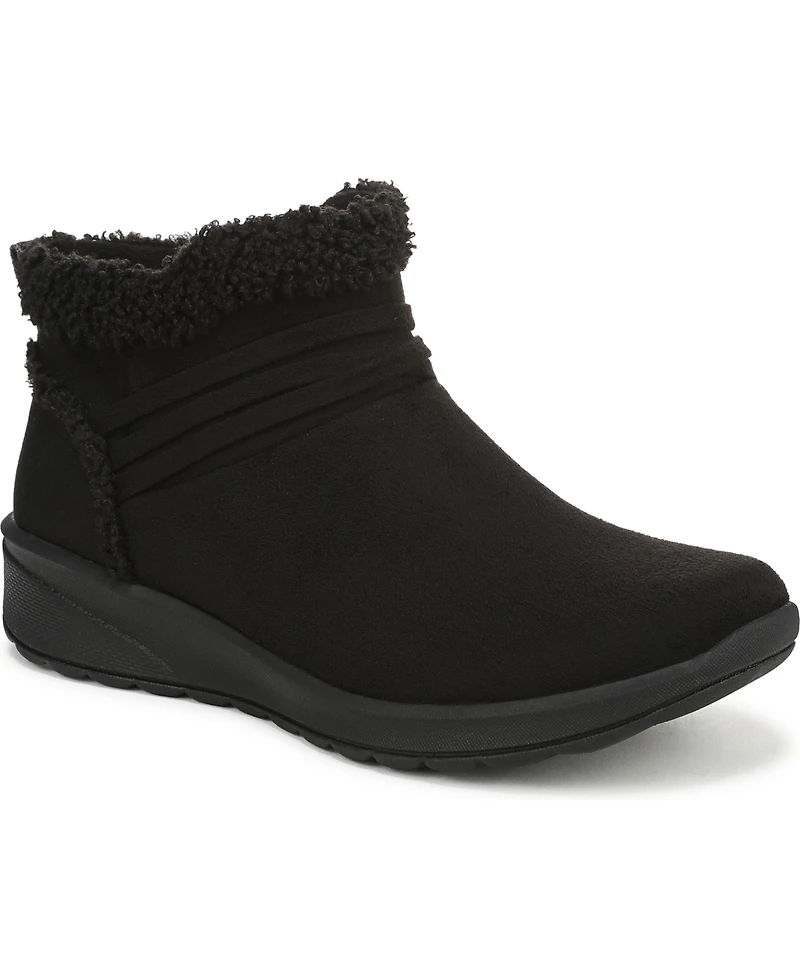 Cozy meets casual in these lightweight women's ankle booties with life-changing comfort. Stretch fabric upper with a round toe, inside zip for easy on/off, and cozy faux fur accents.