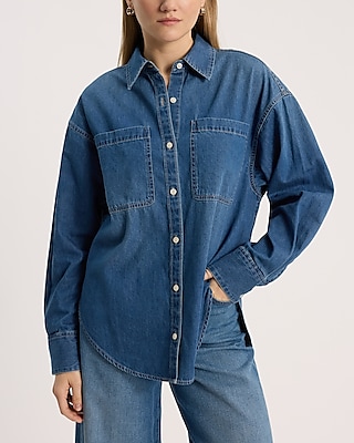 Lightweight Denim Double Pocket Boyfriend Shirt in San Juan, PR