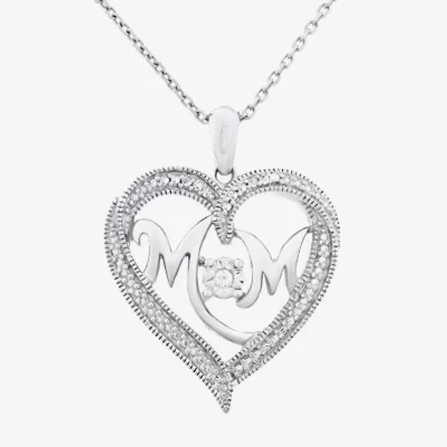 Limited Quantities! "Mom" Womens Diamond Accent Natural White Diamond Sterling Silver Heart 20 Inch Pendant Necklace