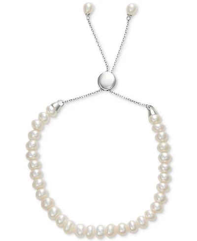 White Cultured Freshwater Pearl (6-1/2mm) Bolo Bracelet in Sterling Silver (Also in Gray or Pink Cultured Freshwater Pearl)