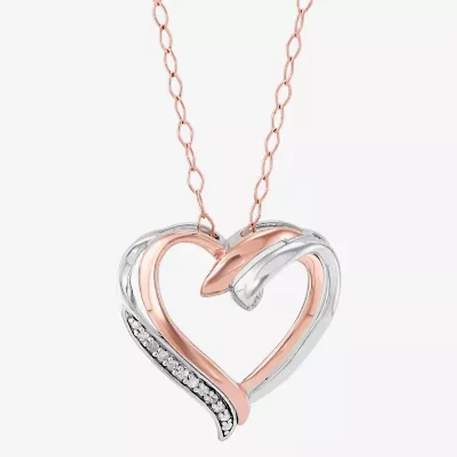 Limited Quantities! Womens Diamond Accent Natural White Diamond 14K Rose Gold Over Silver Sterling Silver Heart 18 Inch Pendant Necklace