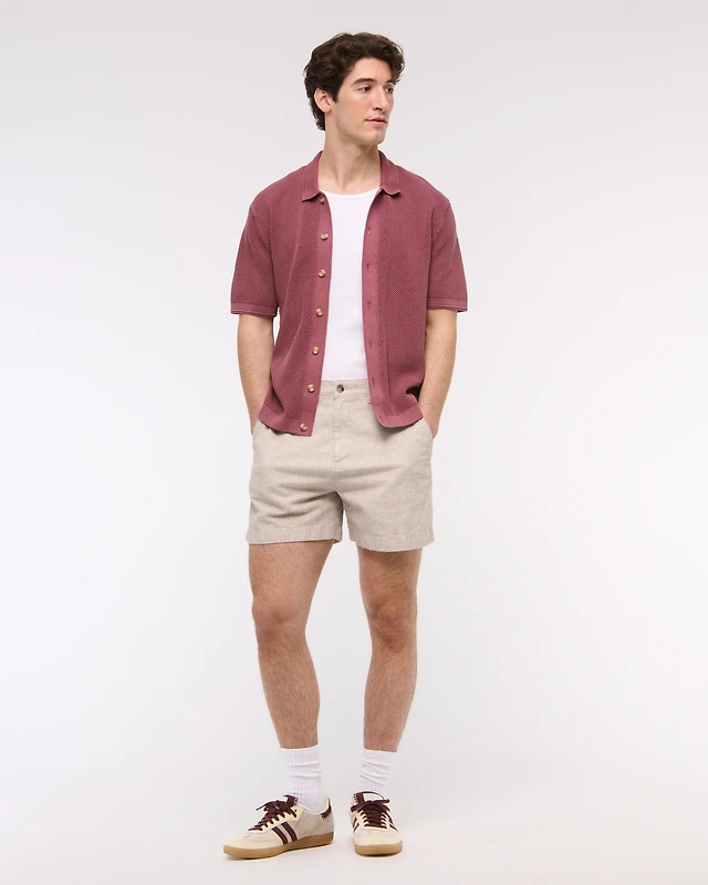 Mid-Thigh Linen-Blend Pull-On Shorts