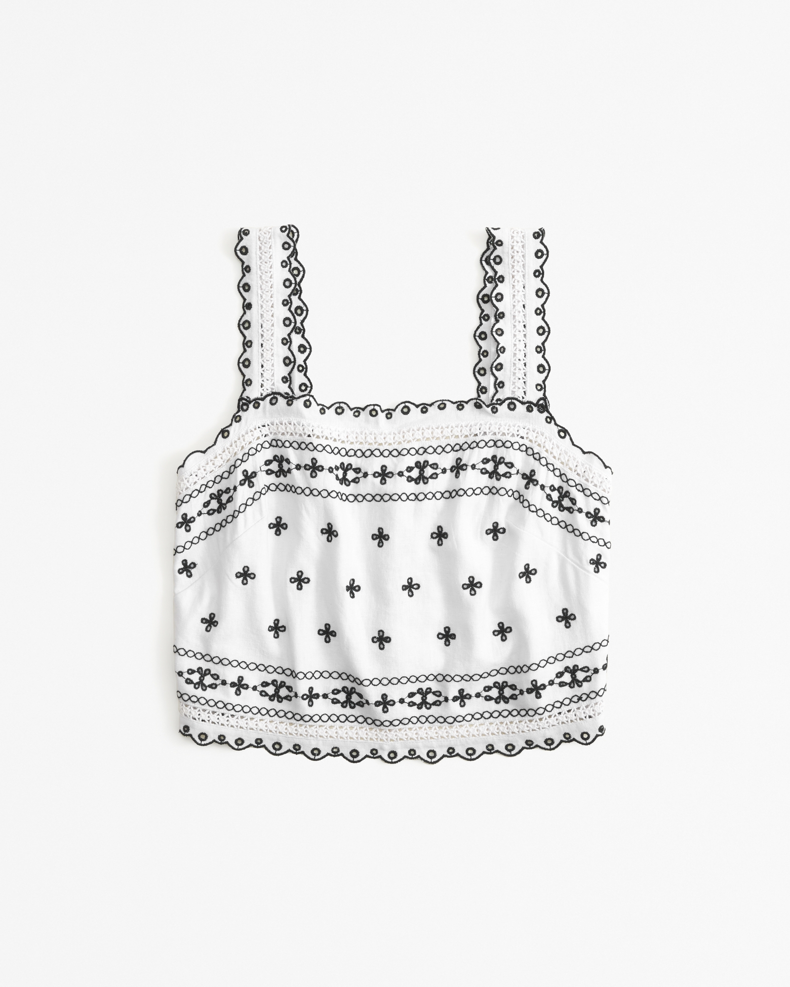 Linen-Blend Embroidered Tie-Back Top
