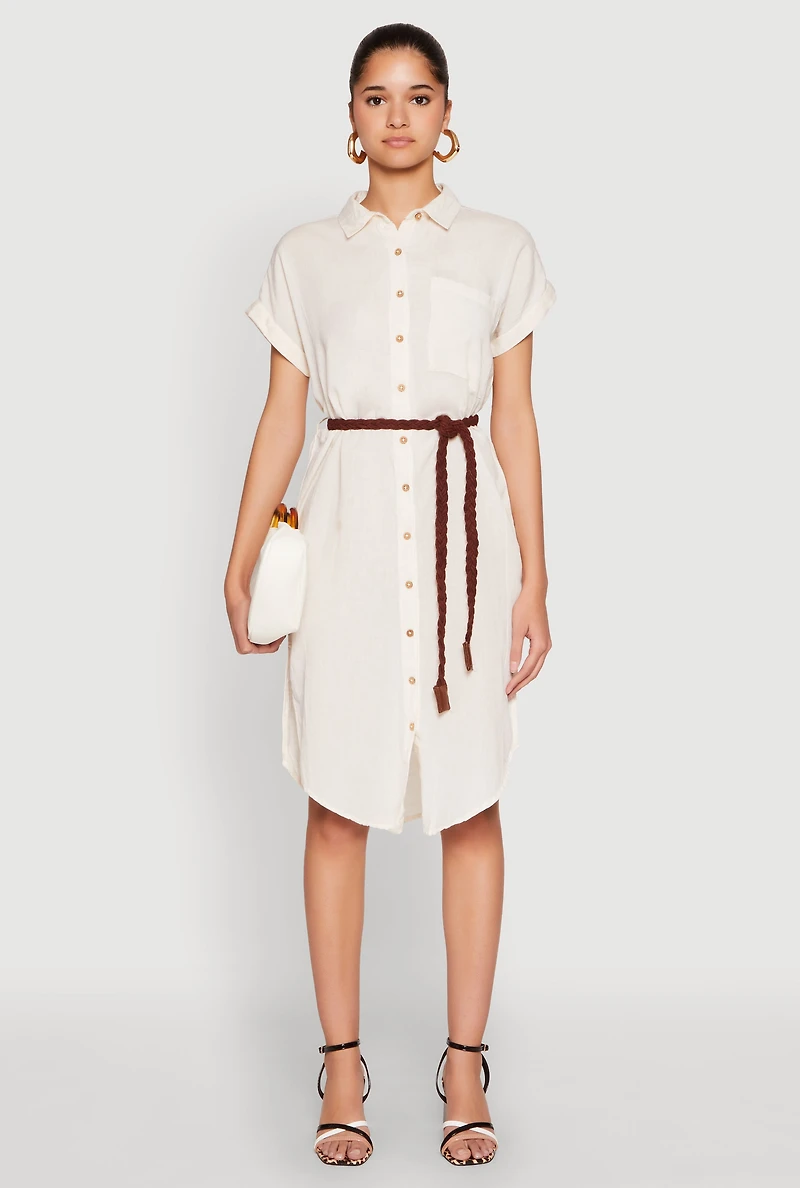 Linen Cap Sleeve Button Front Shirt Dress in San Juan, PR