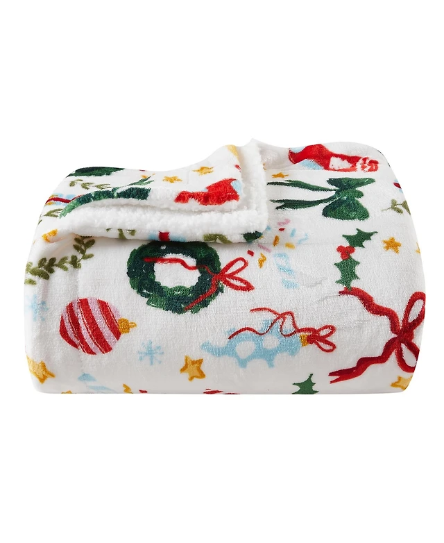 Linery & Co. Velvet Plush Fleece Reversible Sherpa Holiday Printed Throw