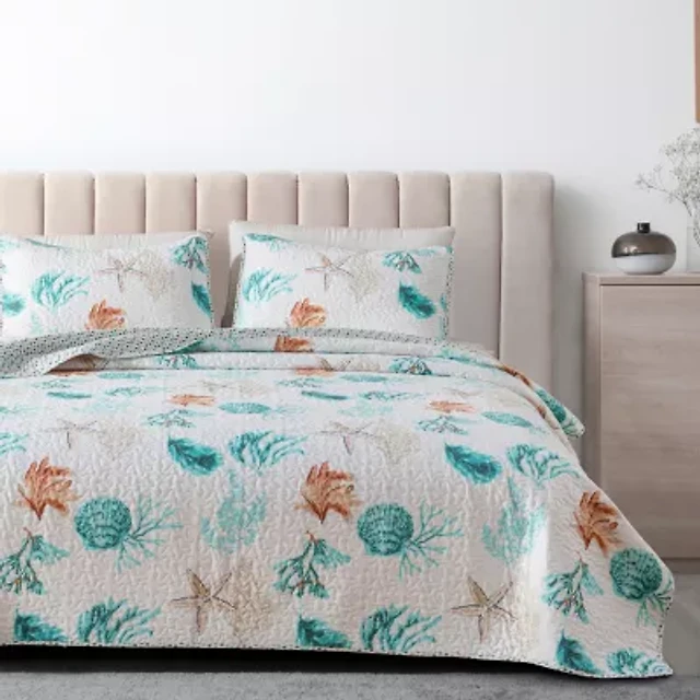 Linery Coral Starfish Reversible Quilt Set