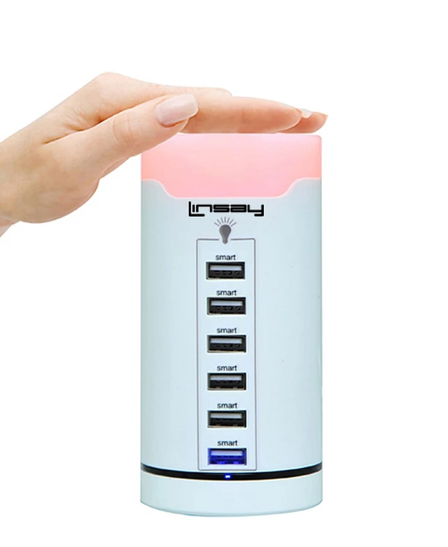 Linsay 6 Usb Charger Station with Smart Led Lamp Touch multi color dimmable