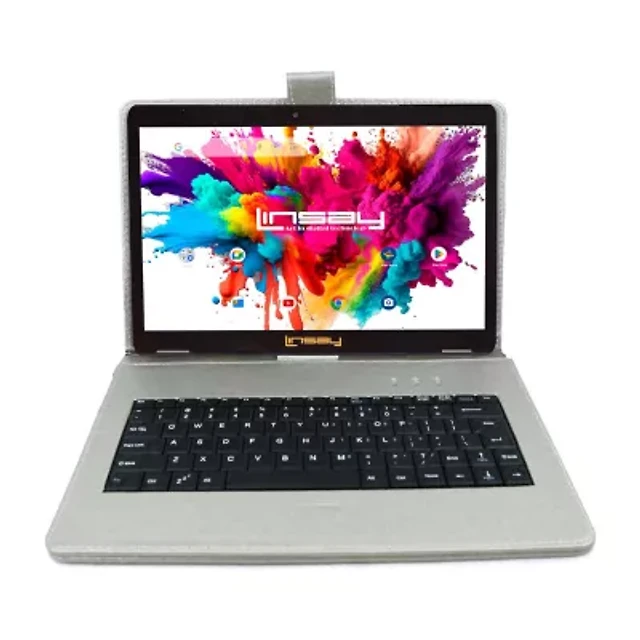 LINSAY® 10.1 Octa Core 128Gb Android 15 Tablet Silver Keyboard