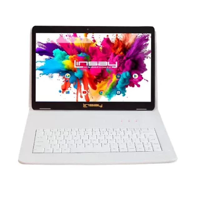 LINSAY® 10.1 Octa Core 128Gb Android 15 Tablet White Croc Keyboard