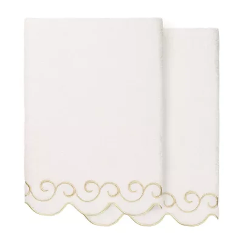 Create a modern mood in your bath with the SIMPLICITY Scallop Embellished Towel Collection. These towels feature an embroidered lively scrolling motif that runs fully side to side with scalloped embroidered bottom edge. These soft and luxurious towels are made of 100% premium Turkish cotton and offer lasting absorbency and superior durability. This collection is available in 3 lovely colors: white/beige, white/blue, and white/gray. The SIMPLICITY Scallop Towel Collection brings a geometric element to your d�cor and makes a great gift.