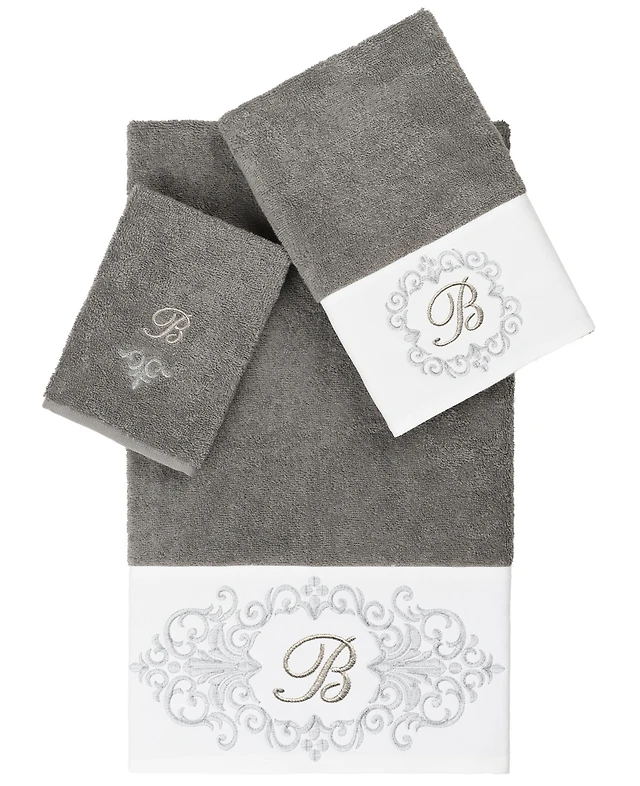 Linum Home Turkish Cotton Monica Embellished Towel 3 Piece Set - Dark Gray - Dark Grey