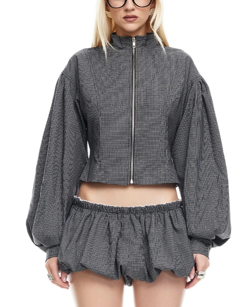 Update your outerwear with this women's zip front jacket from Lioness, featuring chic long bubble sleeves for a touch of modern sophistication and effortless style.