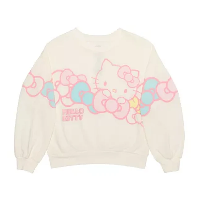 Womens Juniors Crew Neck Long Sleeve Hello Kitty Sweatshirt