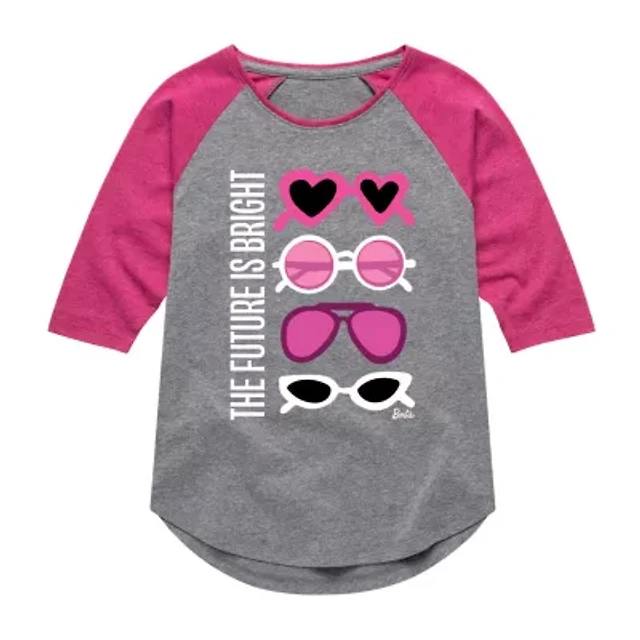 Little & Big Kid Girls Crew Neck 3/4 Sleeve Regular Fit Barbie Graphic T-Shirt