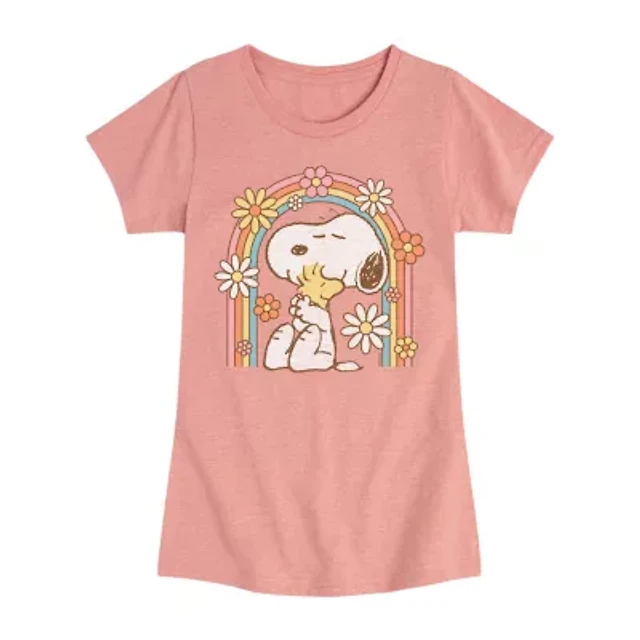 Little & Big Kid Girls Crew Neck Short Sleeve Regular Fit Peanuts Snoopy Graphic T-Shirt