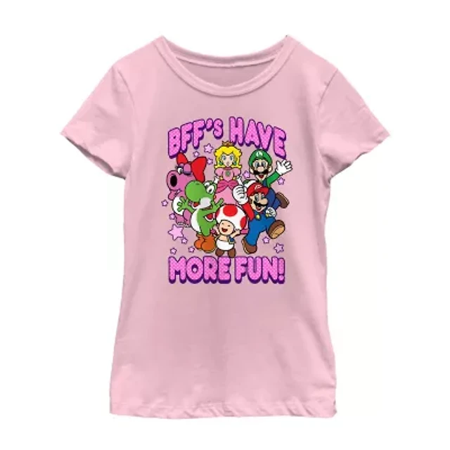 Little & Big Kid Girls Crew Neck Short Sleeve Regular Fit Super Mario Graphic T-Shirt