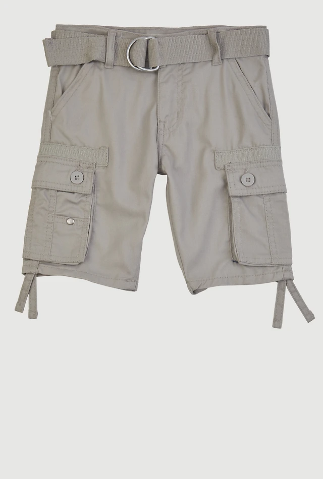 Toddler Boys Tie Hem Belted Cargo Shorts, Grey, Size 4T