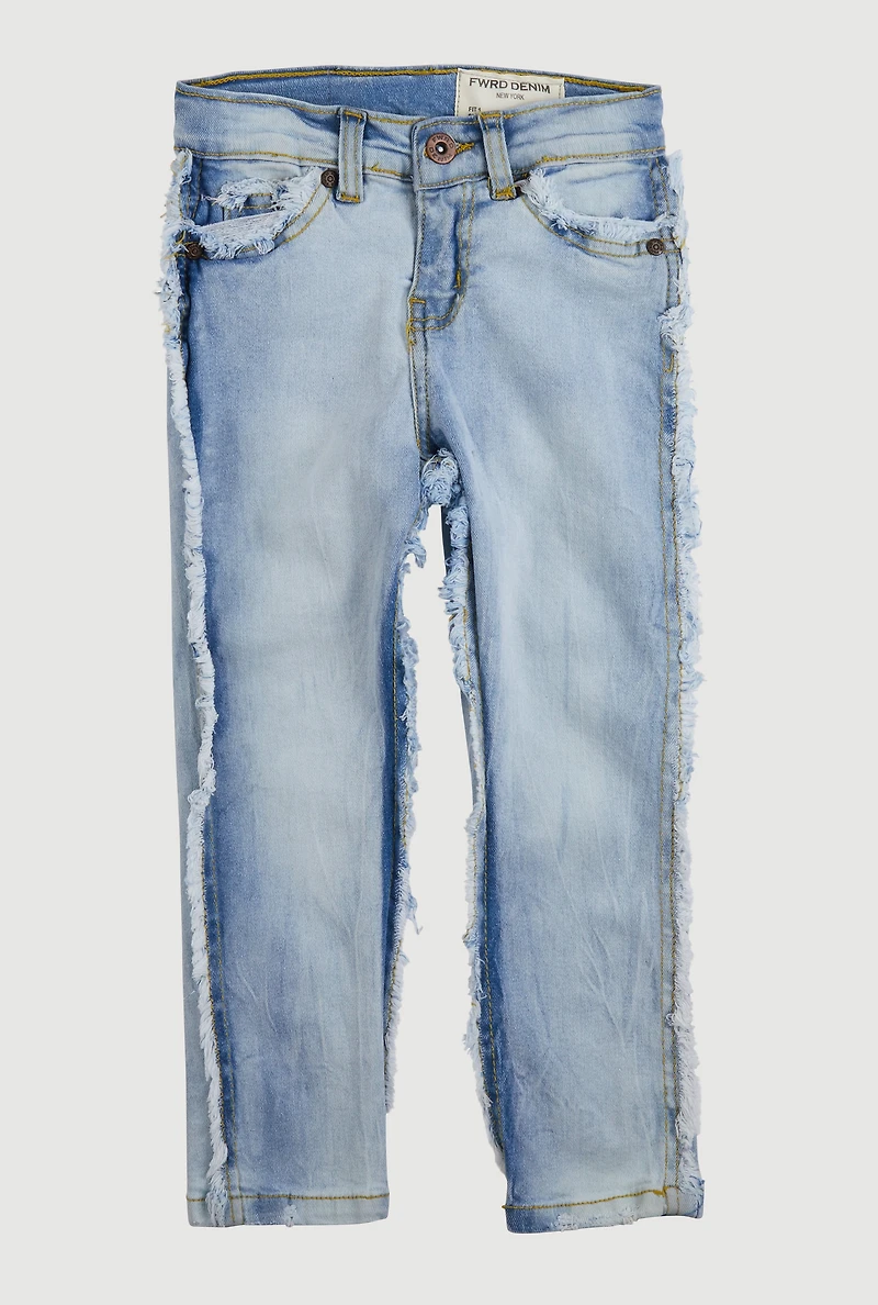 Upgrade your little guy's wardrobe with these trendy Little Boys Frayed Decorative Stitch Jeans. Designed for comfort and style, these skinny leg denim jeans feature playful frayed hems and eye-catching decorative stitching that add just the right amount of edge to any outfit. Perfect for everyday adventures or casual outings, these jeans make dressing fun and effortless for your little trendsetter.