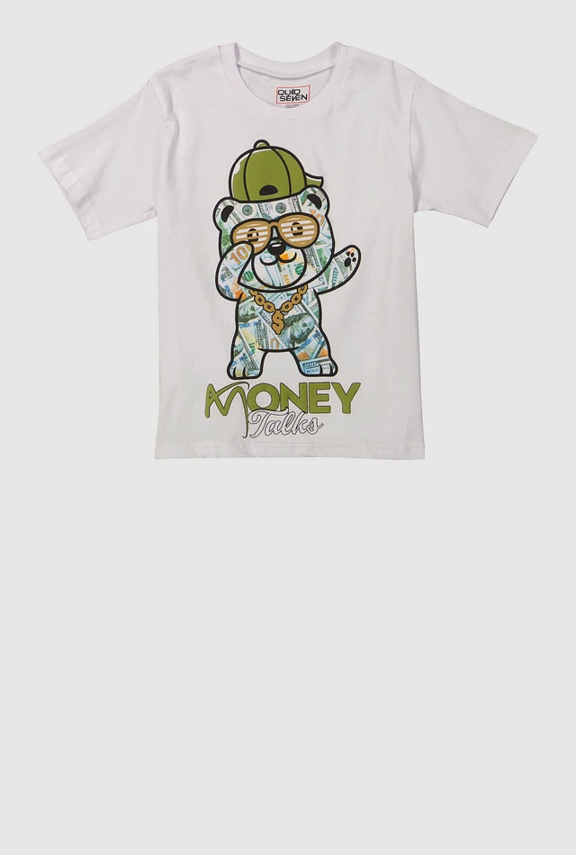 Little Boys Money Talks Bear Graphic Tee, White, Size 4