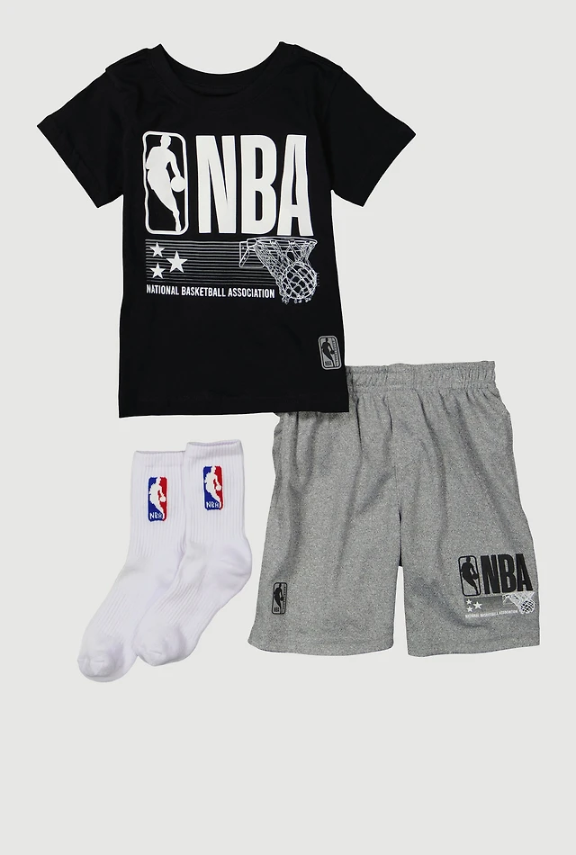 Little Boys NBA Basketball Logo Tee and Shorts with Socks