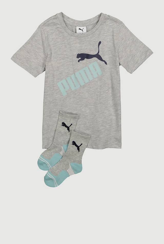 Little Boys Puma Marled Tee with Socks, Grey, Size 6