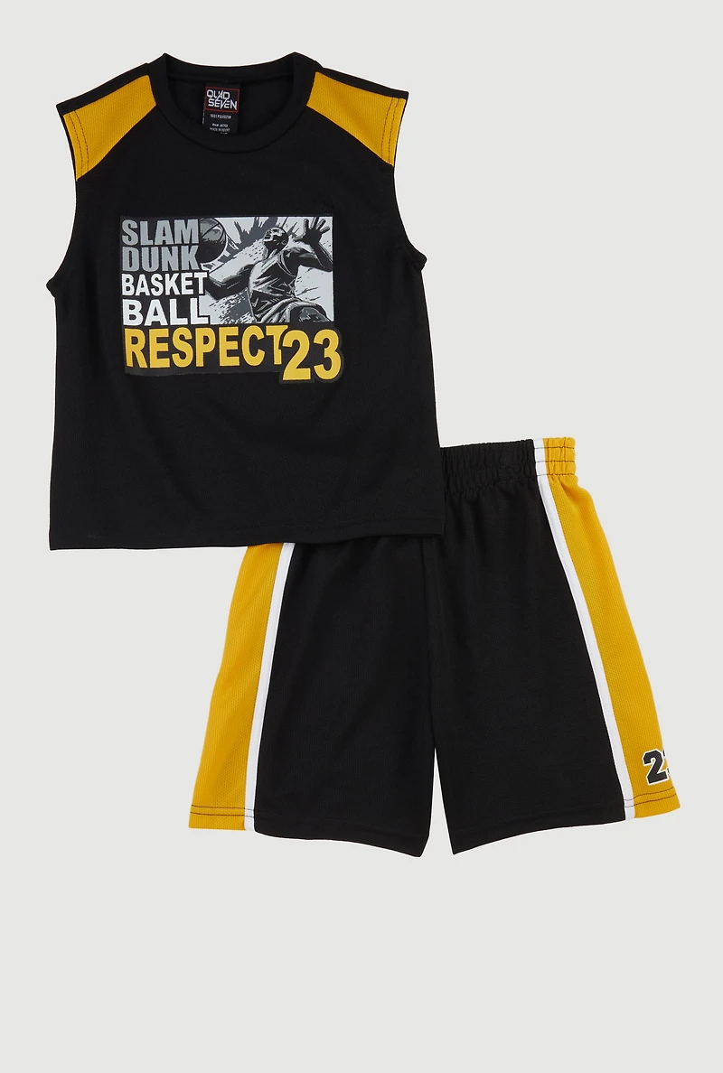 Little Boys Slam Dunk Graphic Tee and Jersey Mesh Shorts