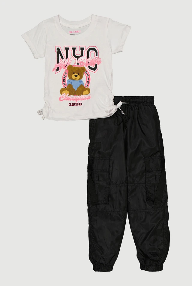 Little Girls Glitter NYC Teddy Bear Graphic Top and Cargo Joggers, Multi, Size 4