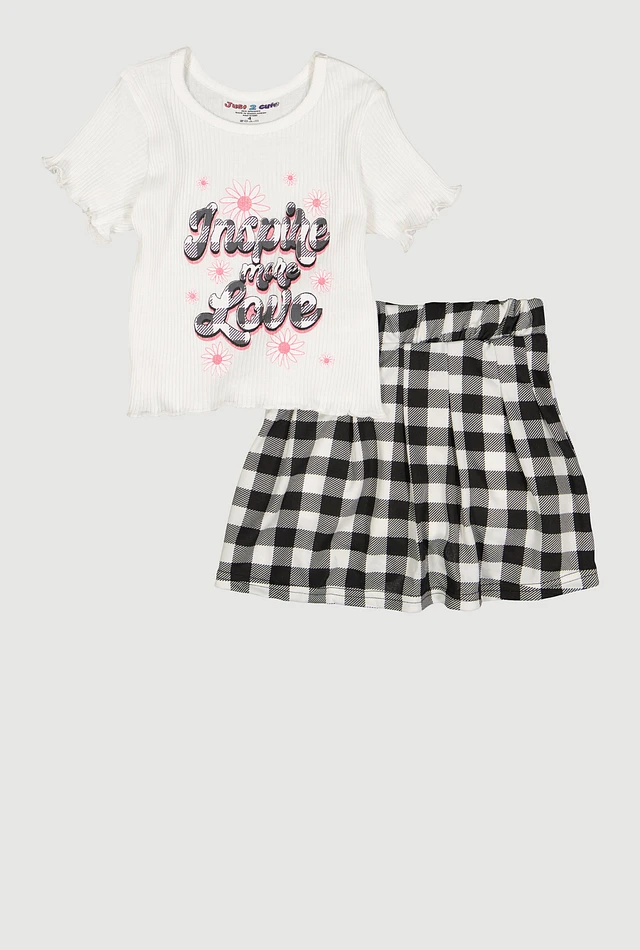 Little Girls Inspire More Love Glitter Top and Plaid Skirt, Multi, Size 5-6