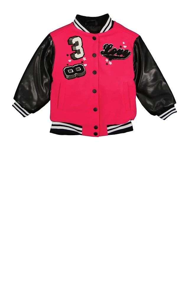 Little Girls Love Chenille Patch Varsity Jacket