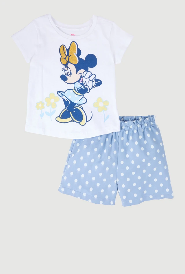 Little Girls Minnie Glitter Graphic Tee and Polka Dot Shorts, Blue, Size 6X