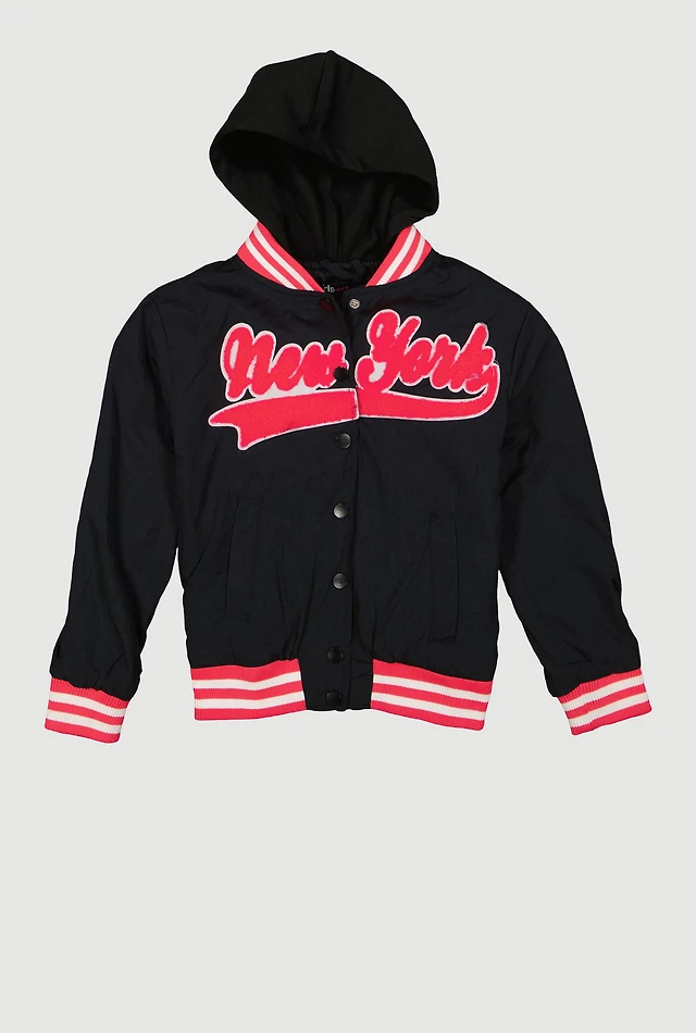 Little Girls New York Hooded Varsity Jacket