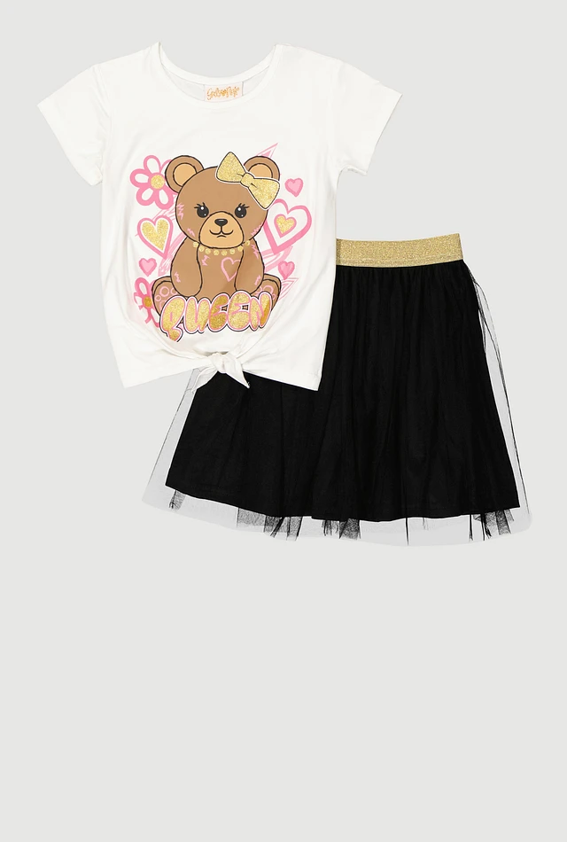 Little Girls Queen Bear Graphic Tee and Tutu Skirt, Multi, Size 4