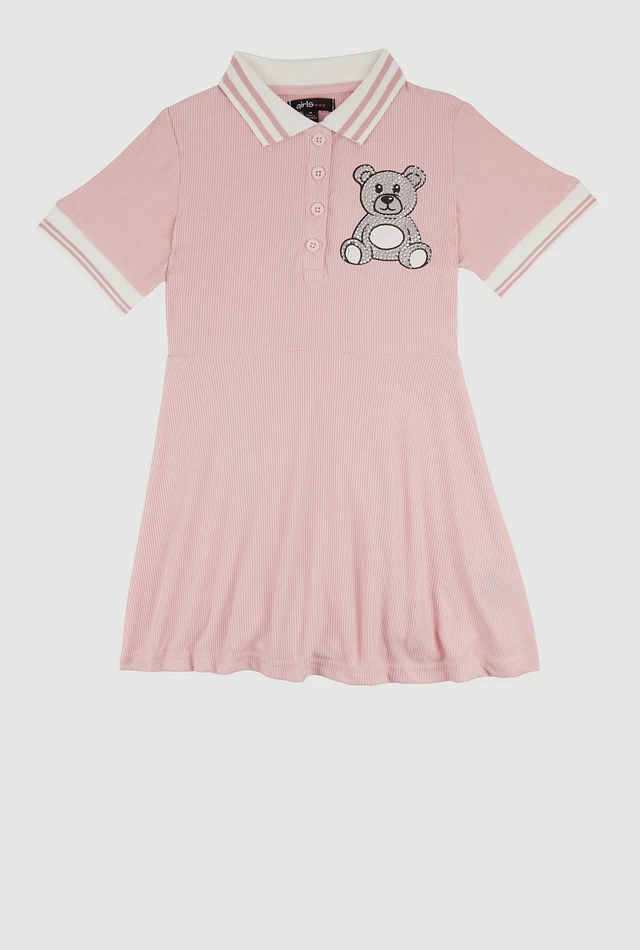 Little Girls Rhinestone Bear Graphic Skater Dress, Pink, Size 5-6