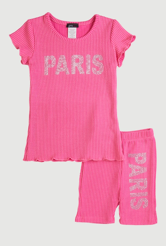 Little Girls Rhinestone Paris Graphic Tee and Biker Shorts, Pink, Size 4