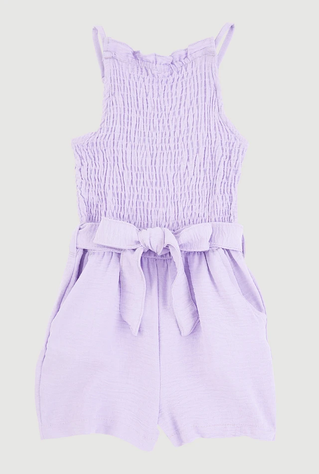 Little Girls Sleeveless Smocked Romper, Purple, Size 6X