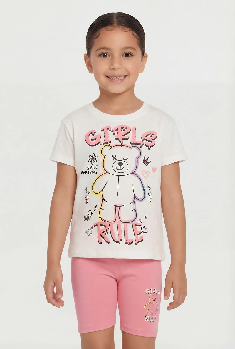 Little Girls Teddy Bear Rule Graphic Tee and Biker Shorts in San Juan, PR