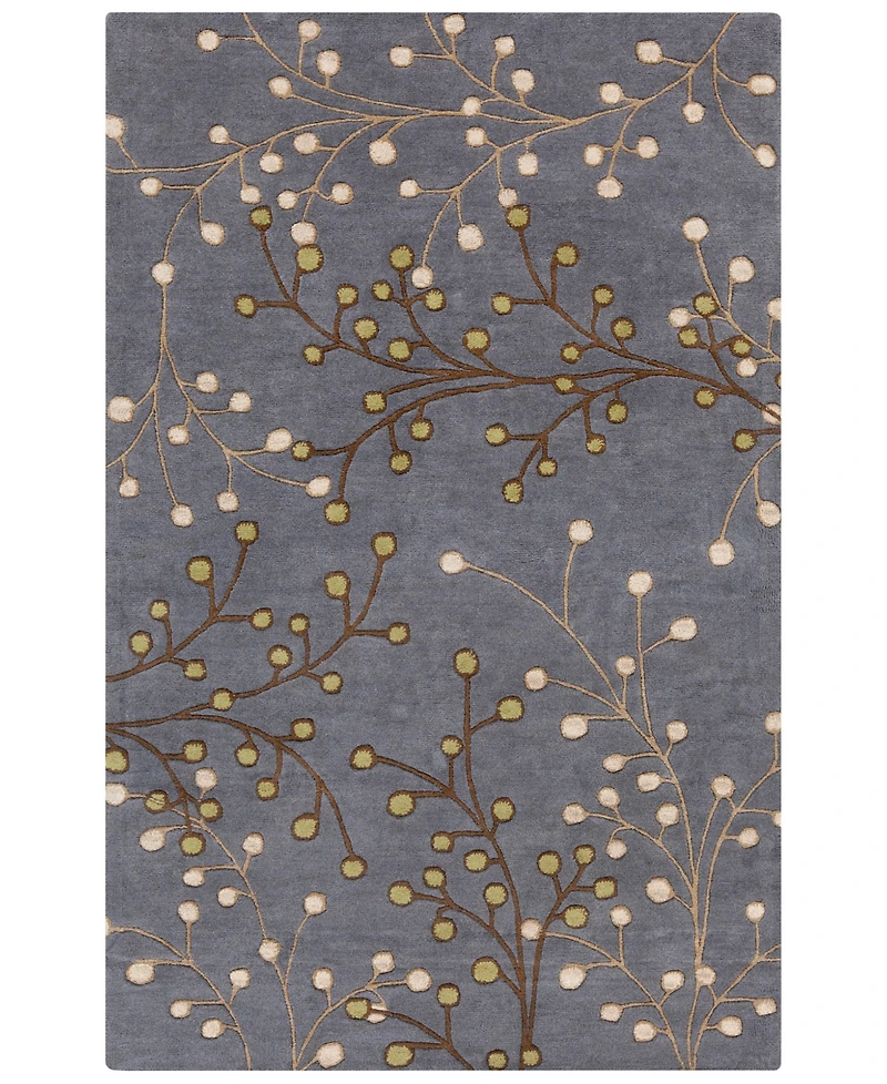 Carved on a deep navy ground, minimalist vines tipped with soft-tone leaf motifs imbue the Athena Ath-5125 area rug by Surya with an enchanting appeal that evokes imagery of a midnight garden. Complementing its cosmopolitan look is the supple feel of its hand-tufted wool finish.