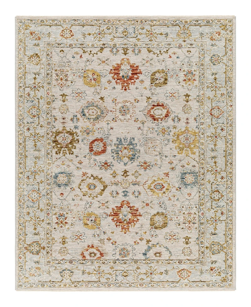 Charming vintage-like design with beautiful florals and natural tones, the Reina collection is heart-warming. This collection features the classic indications of traditional design, border details, and intricate medallions. Machine woven with canvas backing, high and low 0.39"" pile and fringe.