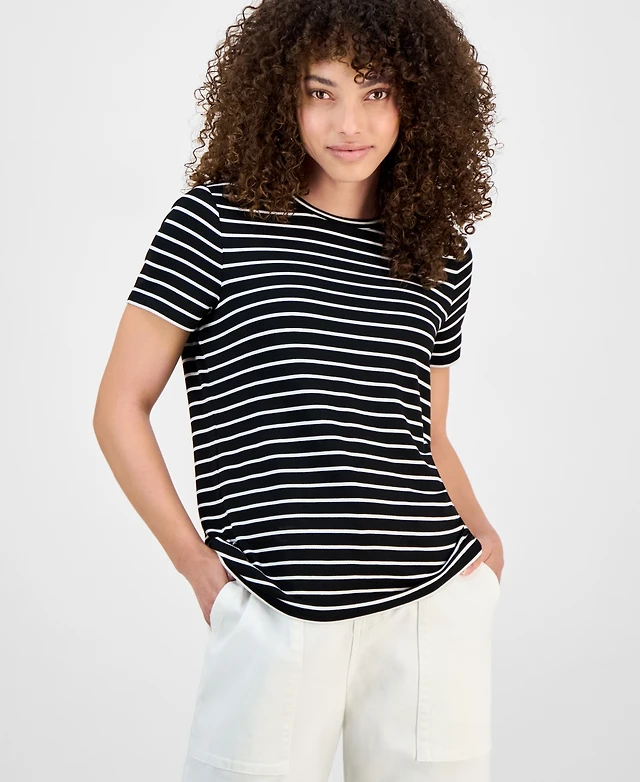 Liverpool Los Angeles Petite Striped Crewneck Short-Sleeve T-Shirt