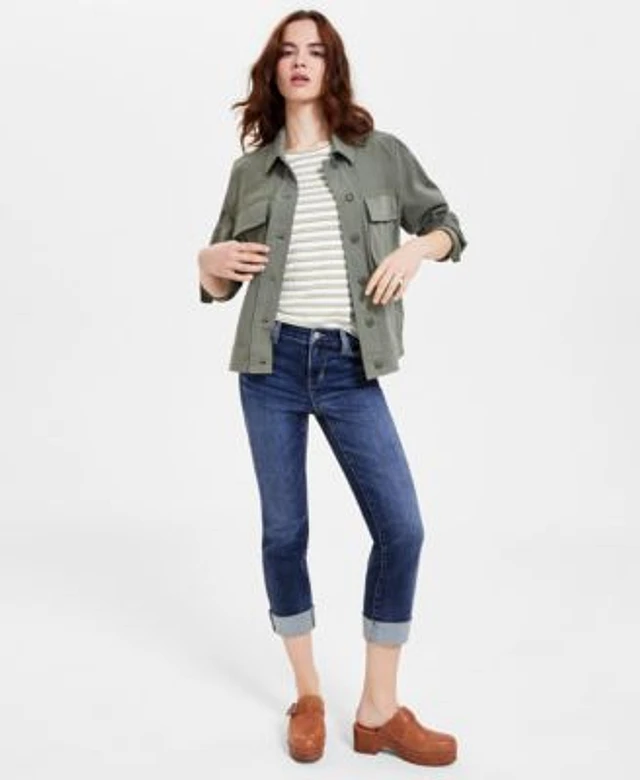Liverpool Los Angeles Womens Twill Cargo Jacket Striped Tee Cuffed Cropped Jeans
