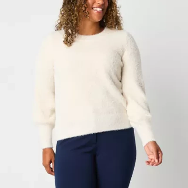 Liz Claiborne Plus Eyelash Womens Crew Neck Long Sleeve Pullover Sweater
