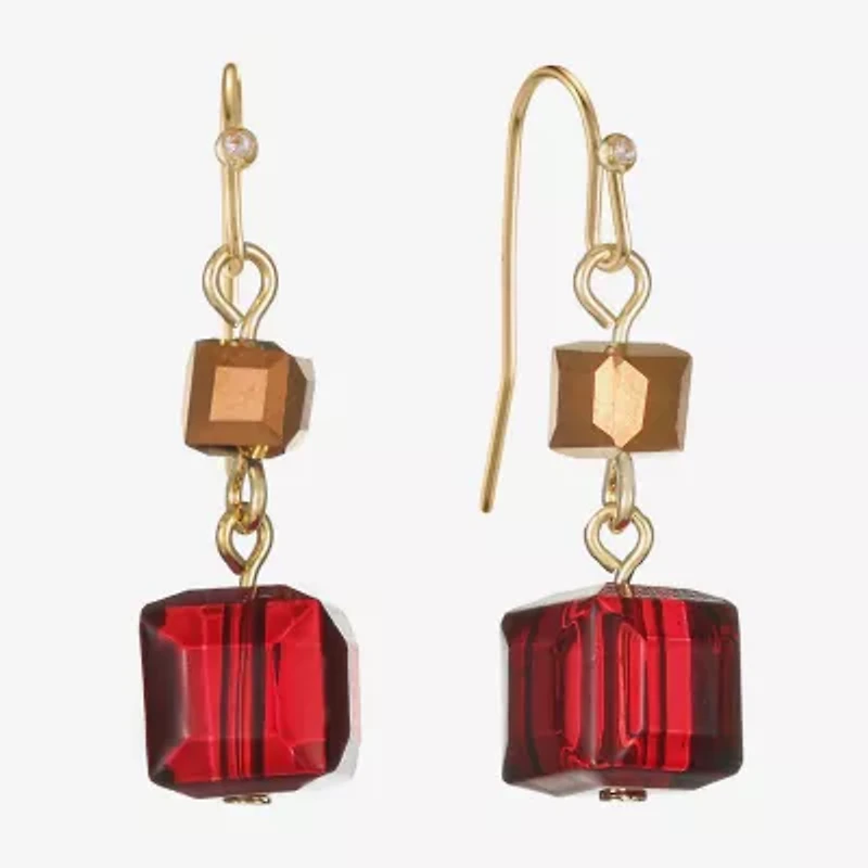 Liz Claiborne Gold Tone Beaded Double Womens Square Drop Earrings