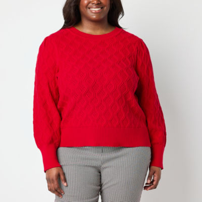 Liz Claiborne Plus Womens Crew Neck Long Sleeve Pullover Sweater