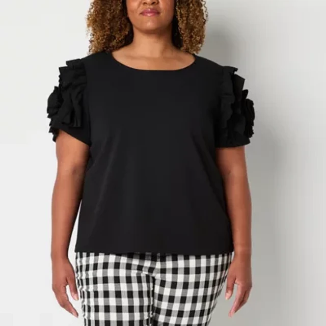 Liz Claiborne Plus Womens Crew Neck Short Sleeve Blouse