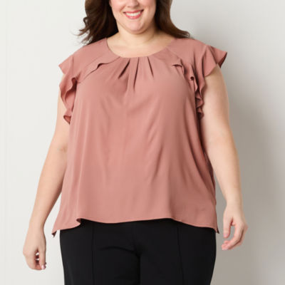 Liz Claiborne Plus Womens Round Neck Short Sleeve Blouse
