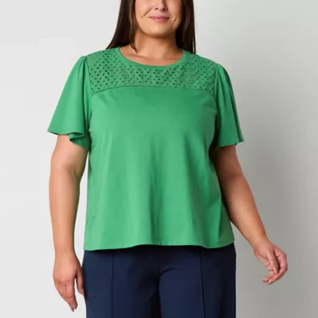 Liz Claiborne Womens Plus Round Neck Short Sleeve Blouse